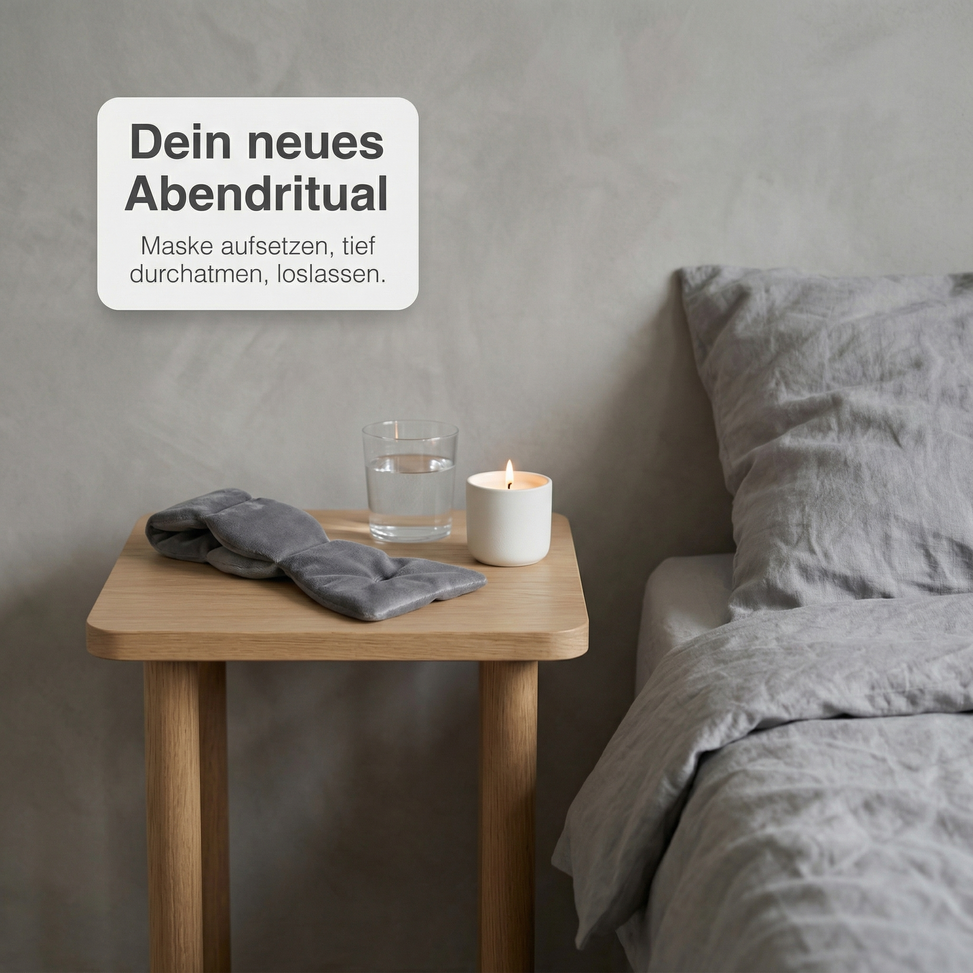 Statt im Bett noch zu scrollen, setzt du die Maske auf, legst das Handy weg und atmest ein paar Mal bewusst.